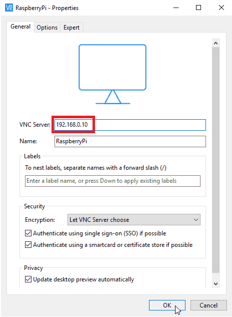 Enter IP of your Raspberry Pi which was found by Advance IP scanner and provide any name as shown below,
