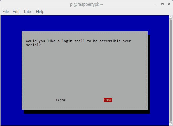 Then it will ask for login shell to be accessible over Serial, select No shown as follows.