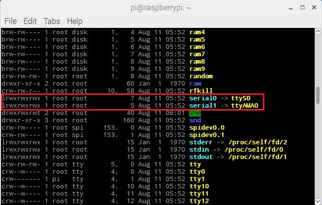 ls -l /devThe mapping of UART port is shown below,