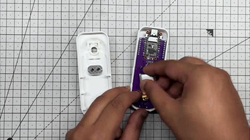 - After that, we align the back half of the enclosure with the front and fasten them together using four M2 screws, completing the full assembly of the device.