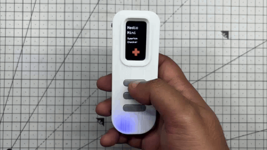 Meet Medic Mini, a handheld self-diagnostic tool designed to guide users through basic symptom checks with just a few button presses. Whether you're feeling under the weather or just want a quick health triage, Medic Mini offers a fast, intuitive way to assess common symptoms without needing an app, internet, or medical jargon.