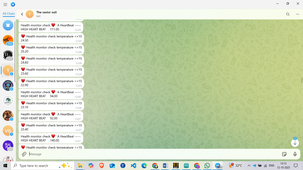 - Alert Layer: Sends secure Telegram messages with health and location data.