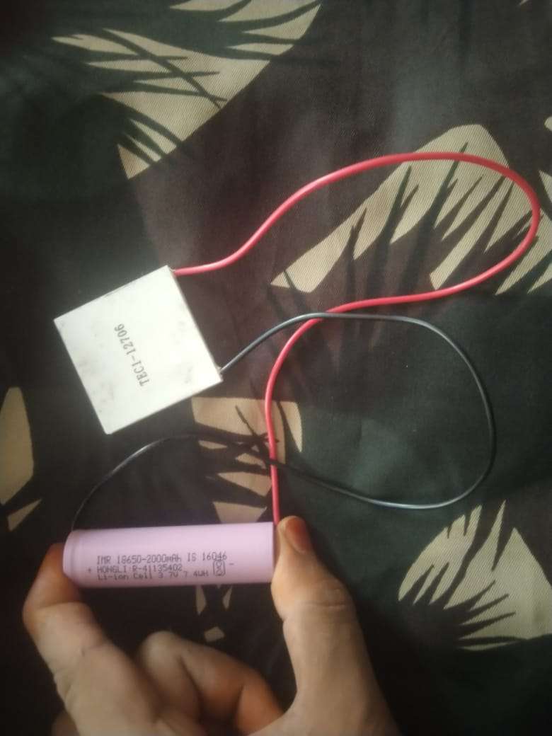 To make the Peltier module heat/hot(+ve of battery to -ve of module and -ve of battery to +ve of module)