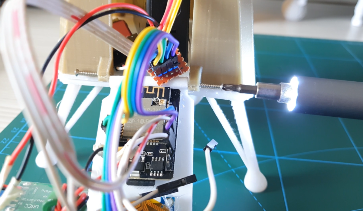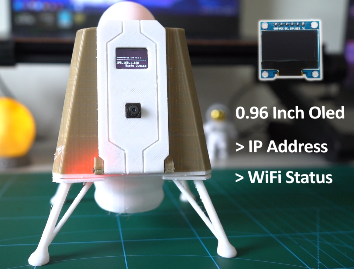 We also have an OLED screen to display information like IP address and connection status. When you power up the lander you will see various messages displayed on it as it checks for wifi connection and MPU6050. If everything is ok you will see the final screen as shown above. It will show an error message if anything is wrong. Think of it as a console. You can display any image on it.