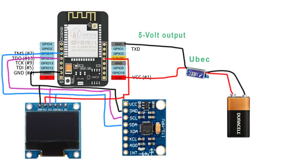 Wiring is very simple. Both MPU6050 and Oled screen use an I2C bus and have to be connected to the same pins. You will need a pinout diagram of esp32 to this. We will not use default I2C pins on esp32 instead we will use software I2C bus pin(14,15). For some reason, default I2C pins were not working on mine so I choose this method. Please refer to the diagram above.