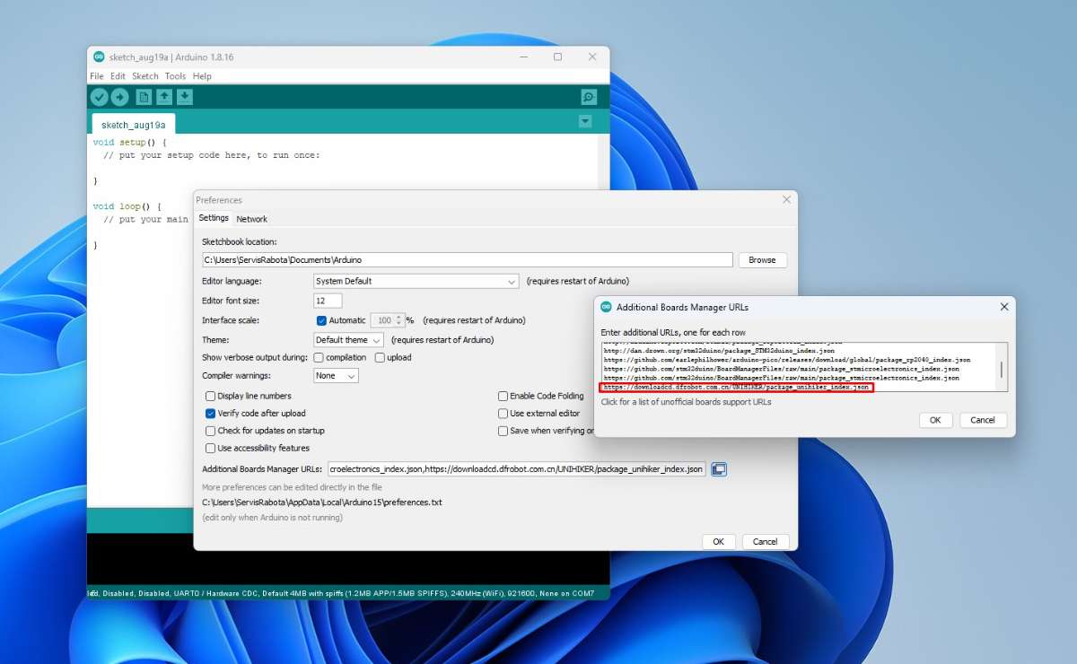 This clock uses NTP (Network Time Protocol) to synchronize time over the internet. To demonstrate the functionality of the buttons, I expanded the code to display the time and date in digital format, as well as change the background colors. To make this cute cloc project, we don't need any external components or soldering, so it's a suitable for beginners. Let me briefly explain how to install support for Unihiker K10 in Arduino IDE. Let me remind you that the Arduino IDE version must be 1.8.19 or older.